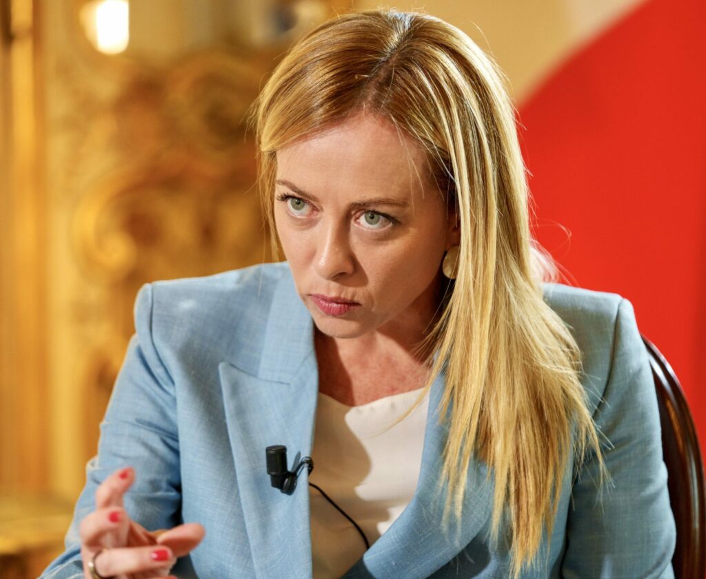 La premier Giorgia Meloni durante l'intervista concessa a SkyTg24 per i vent'anni dell'emittente a palazzo Chigi a Roma, 4 Ottobre 2023. ANSA/UFFICIO STAMPA PALAZZO CHIGI/FILIPPO ATTILI +++ ANSA PROVIDES ACCESS TO THIS HANDOUT PHOTO TO BE USED SOLELY TO ILLUSTRATE NEWS REPORTING OR COMMENTARY ON THE FACTS OR EVENTS DEPICTED IN THIS IMAGE; NO ARCHIVING; NO LICENSING +++ NPK +++