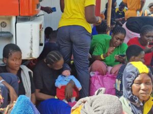 Nell'isola di Lampedusa, tra le centinaia di migranti che si trovano nell'area di presidio dei pompieri, c'è una giovane mamma...