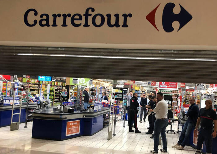 Un italiano di 46 anni, che pare abbia problemi psichici, ha rischiato di fare una strage nel centro commerciale Milano Fiori di Assago, a Milano. Ha afferrato un coltello dall'espositore all'interno del supermercato Carrefour e, senza alcun preavviso, ha iniziato a colpire persone a caso, uccidendo un dipendente trentenne della catena di grande distribuzione e ferendone gravemente altre 4. Tre di loro sono state trasportate in codice rosso in ospedale e il quadro clinico appare molto grave. Al momento le persone coinvolte sono 6, hanno dai 28 agli 81 anni. I carabinieri del comando provinciale di Milano stanno lavorando per ricostruire la dinamica, ma per ora escludono che possa esserci una matrice terroristica alla base del gesto. Più probabile che l'uomo abbia colpito in preda a una crisi psichica esplosa all'improvviso. Tra i feriti anche Pablo Marì, difensore spagnolo del Monza, raggiunto da un fendente che non avrebbe provocato danni preoccupanti al calciatore di serie A. ANSA/MASSIMO ALBERICO