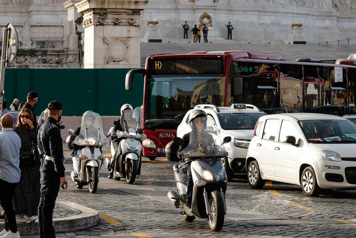Traffico a Piazza Venezia, Roma, 23 Ottobre 2023. ANSA/GIUSEPPE LAMI