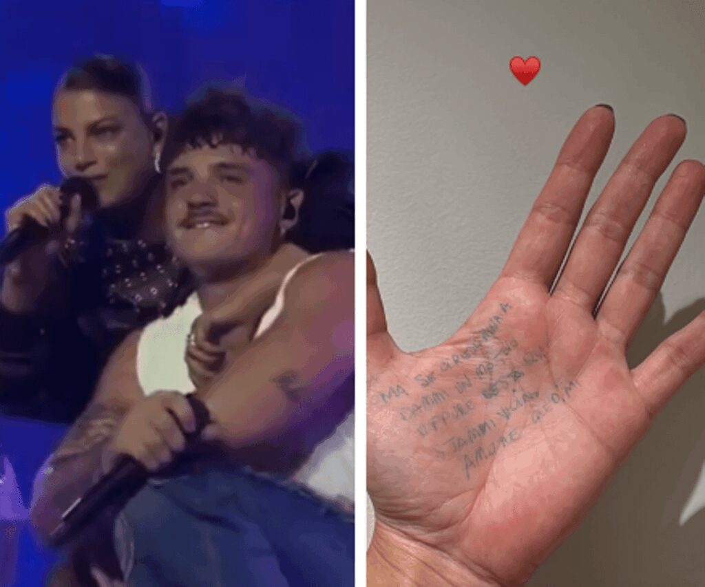Emma è salita sul palco per duettare con Olly sulle note di ‘Ho voglia di te’, hit estiva del 2024 che ha segnato la loro prima collaborazione. Un momento attesissimo, che ha fatto esplodere l’entusiasmo dei 34mila presenti. Ma a far parlare di sé è stato anche un gesto curioso di Emma durante l’esibizione: la cantante è stata notata mentre guardava più volte il palmo della mano prima di intonare la sua parte. I fan più attenti non hanno avuto dubbi: temeva di dimenticare il testo e se l’era scritto sulla mano. A confermare la teoria è stata la stessa Emma, che poco dopo ha pubblicato una Instagram stories mostrando la mano sinistra con uno dei versi del brano.