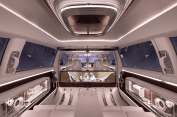 All'interno la gamma Vision V si potrà avere una parete di vetro intelligente e commutabile separa la ‘Private Lounge’ dalla zona di guida, pelle Nappa bianco cristallo, ben 42 altoparlanti del sistema audio surround con Dolby Atmos e sedute di prima classe che ricordano eleganti poltrone lounge. Uno dei punti di forza dell'area di seduta ‘Private Lounge’ è lo schermo cinematografico a scomparsa da 65 pollici situato sotto il pavimento. Non appena i passeggeri sono all'interno e le portiere sono chiuse, lo schermo si solleva come per magia da una console progettata con legno di radica e pelle Nappa —motoriwebinfo@adnkronos.com (Web Info)