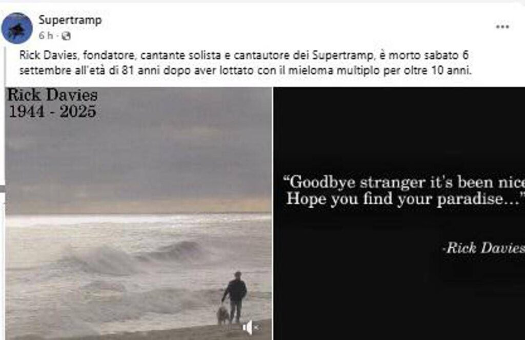 (Adnkronos) – Il mondo della musica piange la morte di Rick Davies, tastierista, cantante e anima dei Supertramp, una delle band più amate del panorama rock progressivo e pop internazionale. Davies è deceduto venerdì scorso nella sua casa di Long Island, nello stato di New York, all’età di 81 anni, dopo una lunga battaglia contro il mieloma multiplo, un tumore del sangue che gli era stato diagnosticato nel 2015.