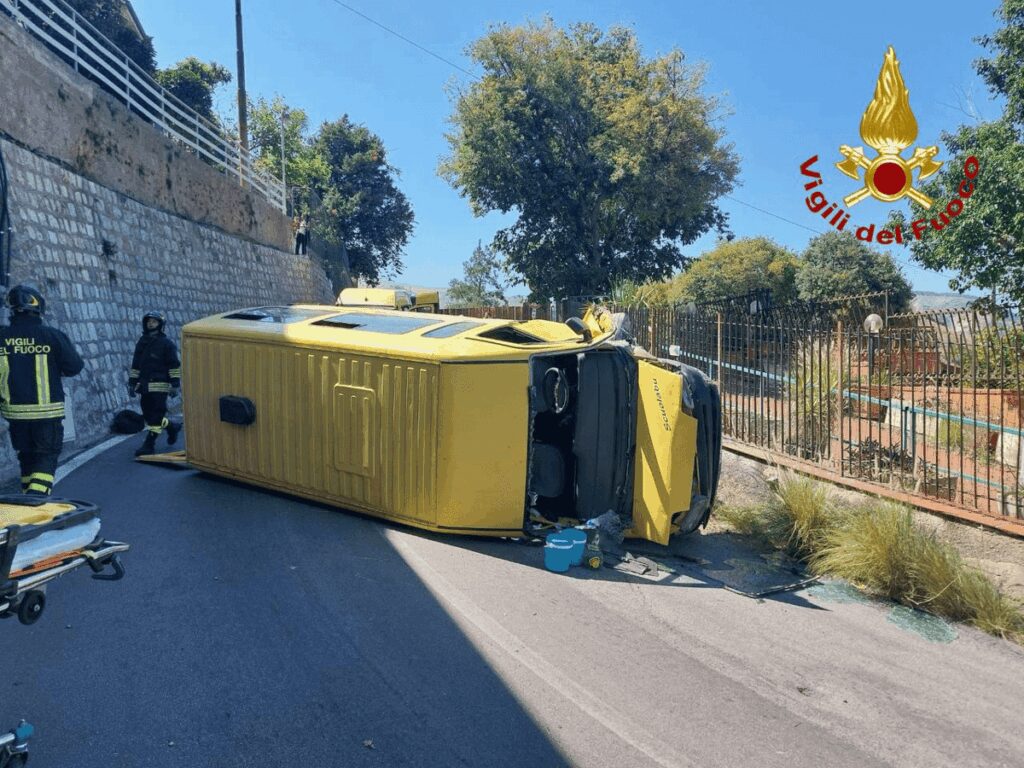 Pulmini con 21 bambini si ribalta, quattro feriti