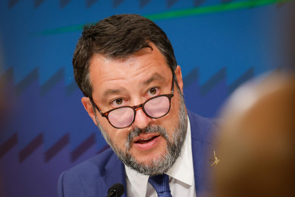 Il vicepresidente del Consiglio e ministro delle Infrastrutture e dei trasporti, Matteo Salvini, durante la conferenza stampa al termine del Consiglio dei Ministri a Palazzo Chigi, Roma, 07 agosto 2023. ANSA/GIUSEPPE LAMI