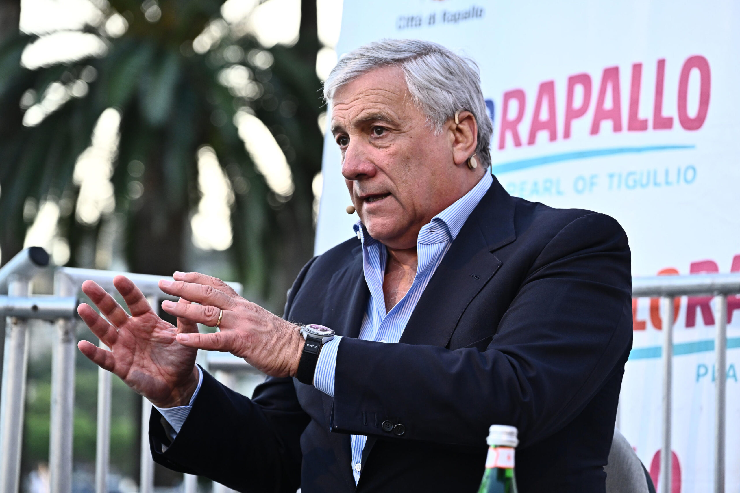 Il ministro degli Esteri Antonio Tajani durante la manifestazione 'Rapallo Protagonisti'. Il ministro intervistato dal giornalista Roberto Arditi. Rapallo, 23 settembre 2023. ANSA/LUCA ZENNARO