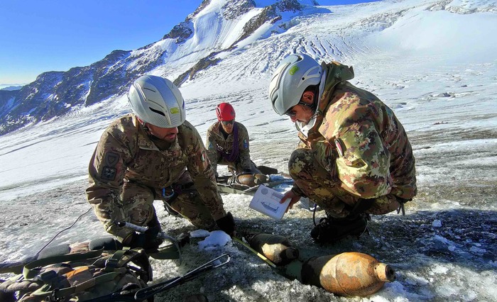 Gli artificieri dell’esercito hanno recuperato e messo in sicurezza sette proiettili d’artiglieria di grosso calibro risalenti alla Grande guerra sul ghiacciaio dell’Ortles, la vetta più alta dell’Alto Adige. A causa delle alte temperature estive degli ultimi anni, anche le vette più alte delle Alpi stanno mostrando segni di cambiamento, e i proiettili sono riemersi dal ghiaccio.
