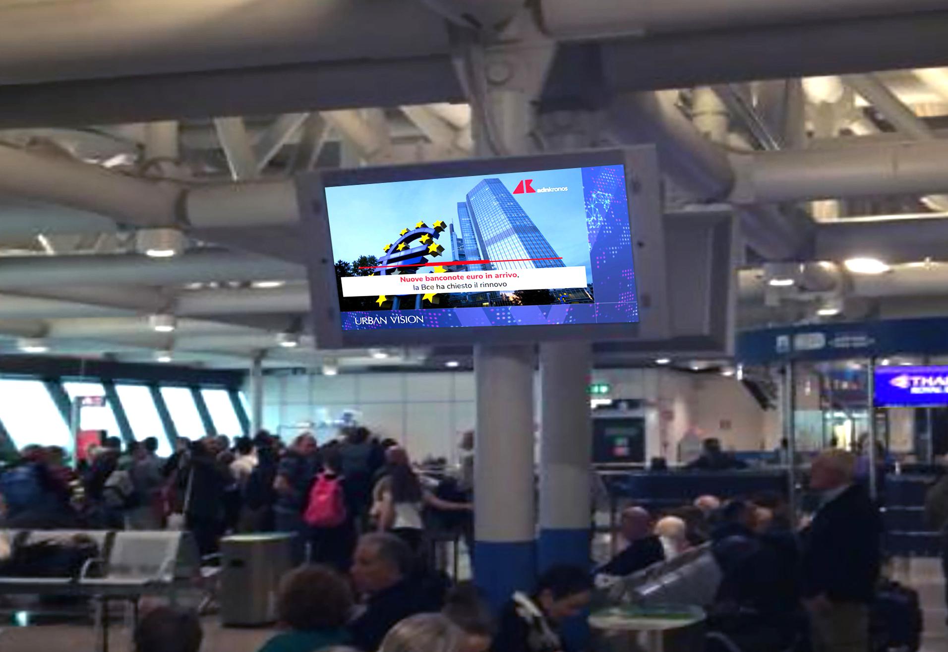 Ogni giorno, dalle 16.00 alle 20.00, sui 67 schermi unificati del circuito gestito in esclusiva da Urban Vision, vengono trasmesse notizie economico-finanziarie provenienti da tutto il mondo. Questo palinsesto verrà presto ampliato con ulteriori tematiche, con l’obiettivo di tenere aggiornati i passeggeri in tempo reale. I monitor sono posizionati ai gate di imbarco, garantendo un’elevata esposizione: la loro distribuzione accompagna i viaggiatori nelle diverse aree dei due aeroporti, raggiungendo oltre 459 milioni di consumatori all’anno.