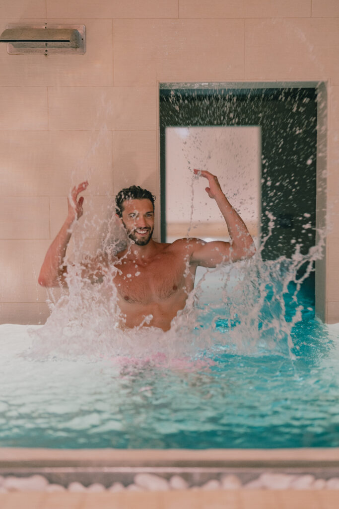 L’acqua è un elemento fondamentale per il benessere e V SPA ROMA lo sa bene. In un’ottica di sostenibilità, la SPA ha implementato un sistema di riciclo dell’acqua, che viene controllata due volte al giorno per garantire i corretti valori di cloro e pH. Questa attenzione alla qualità dell’acqua assicura un’esperienza rilassante e sicura per tutti gli ospiti. Ma le preoccupazioni per l’ambiente non si fermano qui, V SPA ROMA utilizza esclusivamente prodotti biologici al cento per cento nell’acqua vaporizzata delle sue docce emozionali. Gli olIi essenziali di papaya e arancia sono utilizzati per creare un’esperienza sensoriale unica, mentre nell’ulteriore doccia emozionale viene utilizzato l’olio essenziale di lavanda biologico, noto per le sue proprietà rilassanti, nel bagno turco eucalipto sempre bio. Uno dei punti di forza di V SPA ROMA è la sua piscina unica, che offre un’esperienza eccezionale. Durante l’inverno, l’acqua viene riscaldata a una piacevole temperatura di 38 gradi Celsius, mentre durante l’estate, la piscina rimane fresca a una temperatura di 32-34 gradi Celsius. Questo permette agli ospiti di godere di un tuffo rigenerante in qualsiasi momento dell’anno.
